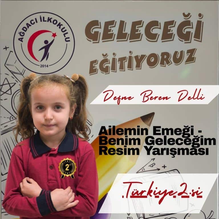 Türkiye Geneli düzenlenen Ailemin Emeği - Benim Geleceğim Resim yarışmasında 3/C sınıfı Öğrencimiz Defne Beren DELLİ Türkiye 2. si olmuştur. Öğrencimizi ve öğretmenini tebrik ediyor, başarılarının devamını diliyoruz.